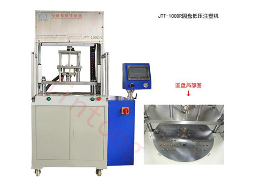 圓盤(pán)低壓注塑機(jī):鎖模方式為圓盤(pán)式,增加了注塑效率,適合不到尾線的低壓包膠注塑。