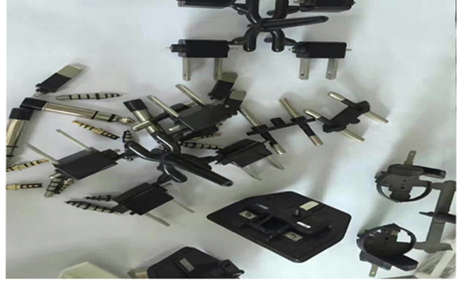 采用JTT-550R圓盤機(jī)注塑插頭的段子一模可出20個(gè),兩排一次注塑出40個(gè)插頭端子